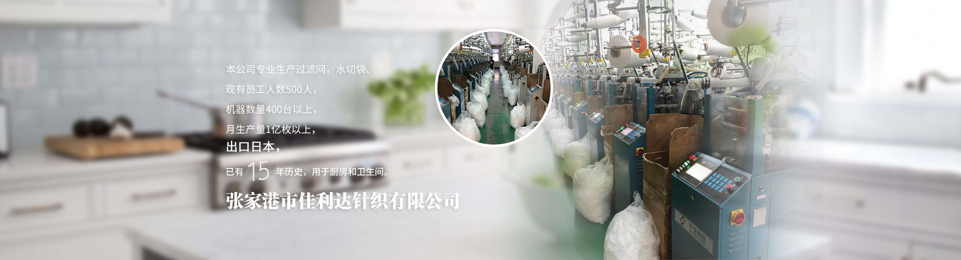 張家港市佳利達針織有限公司地處田垛里二區,北依南通港,東傍上海港,與蘇錫常地區接壤,地理位置優越,水陸交通便利?,F有員工人數500人,機器數量400臺以上,月生產量1億枚以上。公司專業生產水切網、滌綸網袋、垃圾過濾袋、無紡布網袋、水槽過濾袋、水槽水切袋、不銹鋼水槽網、廚余過濾、廚房衛生清潔用品等,出口日本已有15年歷史,用于廚房和衛生間,產品暢銷上海、廣州、深圳、南京、蘇州、無錫、常州等全國各地。